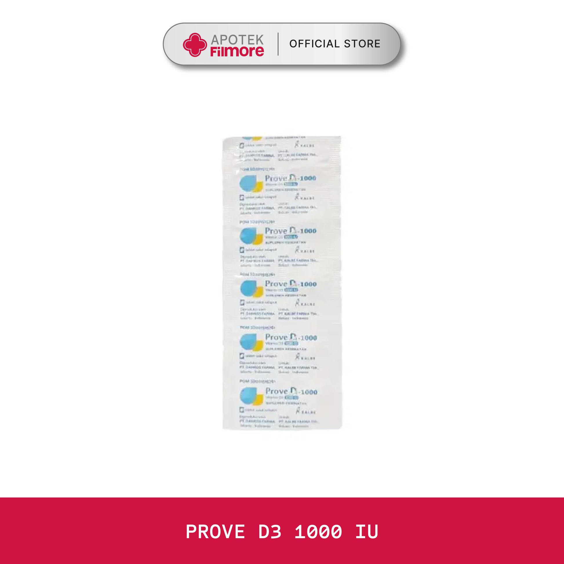 Prove D3 1000IU merupakan suplemen kesehatan untuk membantu memenuhi kebutuhan vitamin D secara cepat, khususnya pada kondisi usia lanjut, ibu hamil dan menyusui, penderita penyakit infeksi atau autoimun. Produk ini mengandung vitamin D3 atau Cholecalciferol 1000 mg, yaitu vitamin D yang sama dengan vitamin D hasil produksi tubuh saat terpapar sinar matahari.